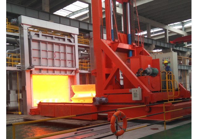 生產(chǎn)線配有一臺(tái)快速下水(油)淬火操作車,該操作車可上下、左右、前后六個(gè)方向移動(dòng)。工件熱處理完成后,操作車迅速進(jìn)入爐內(nèi)將工件從爐膛內(nèi)叉出,并快速落入水池或淬火液池內(nèi),整個(gè)轉(zhuǎn)移過程可控制在30秒內(nèi)完成。