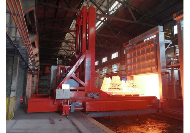 生產(chǎn)線配有一臺(tái)快速下水(油)淬火操作車,該操作車可上下、左右、前后六個(gè)方向移動(dòng)。工件熱處理完成后,操作車迅速進(jìn)入爐內(nèi)將工件從爐膛內(nèi)叉出,并快速落入水池或淬火液池內(nèi),整個(gè)轉(zhuǎn)移過程可控制在30秒內(nèi)完成。