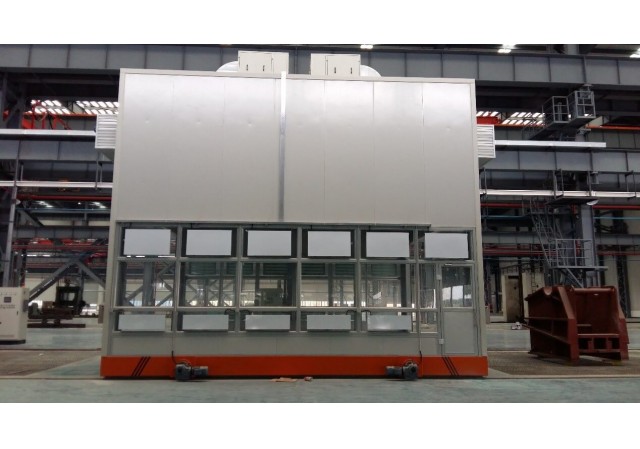 龍門移動式噴漆間是本公司為解決重型工件移動困難及工作區(qū)可連續(xù)交叉作業(yè)的綜合利用而專門設計的實用性產(chǎn)品。解決了一般固定式噴漆間重型工件移入移出繁瑣的工序。工件噴漆前首先通過啟動預定程序?qū)⒎矿w移動至噴漆場地,罩住工件后即可進行噴漆作業(yè),如此設計可以實現(xiàn)大型工件的不間斷連續(xù)噴漆工作。