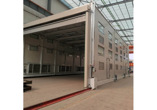 龍門移動式噴漆間是本公司為解決重型工件移動困難及工作區(qū)可連續(xù)交叉作業(yè)的綜合利用而專門設計的實用性產(chǎn)品。解決了一般固定式噴漆間重型工件移入移出繁瑣的工序。工件噴漆前首先通過啟動預定程序將房體移動至噴漆場地,罩住工件后即可進行噴漆作業(yè),如此設計可以實現(xiàn)大型工件的不間斷連續(xù)噴漆工作。